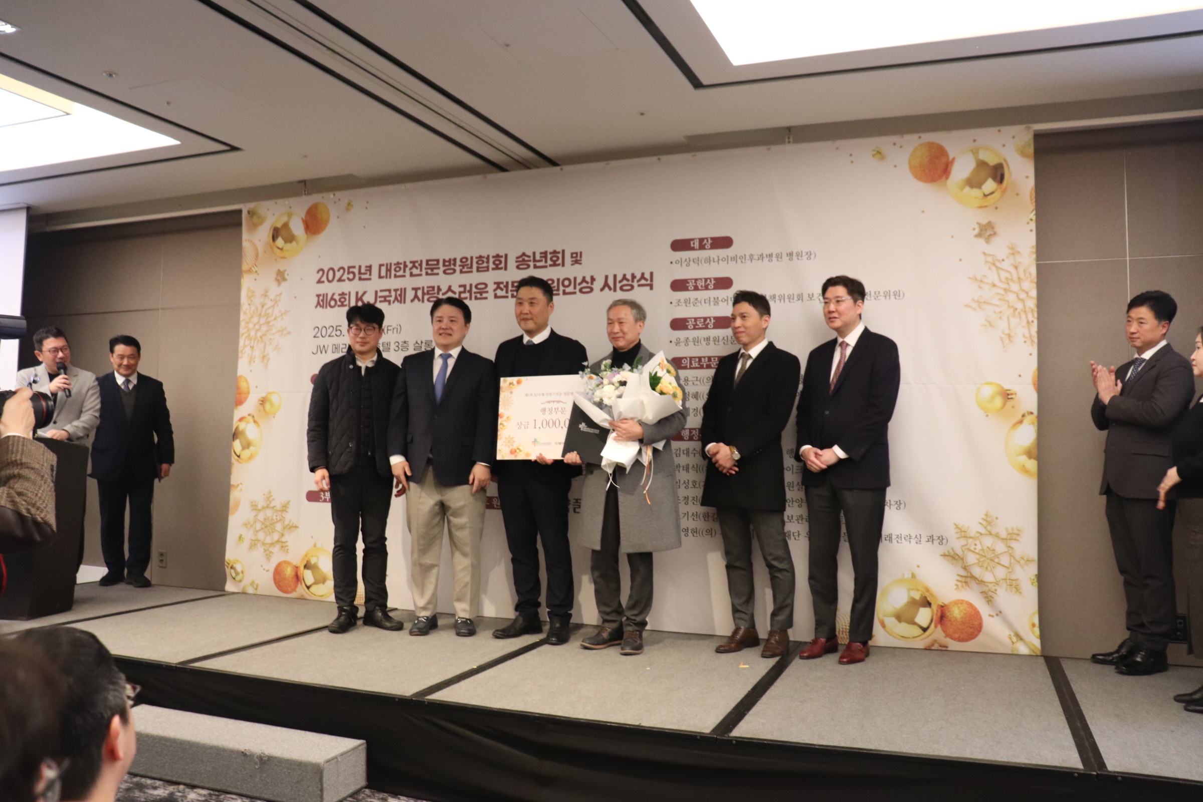 [언론보도] [헬스경향] 대한전문병원협회, ‘송년회 및 KJ국제 자랑스러운 전문병원인상 시상식’ 성료...대한전문병원협회가 19일 ‘2025년도 송년회 및 제6회 KJ국제 자랑스러운 전문병원인상 시상식’을 진행했다고 밝혔다.KJ국제 자랑스러운 전문병원인상은 대한전문병원협회와 국제약품이 공동 제정했으며 올해는 하나이비인후과병원 이상덕 병원장이 대상의 영예를 안았다.이상덕 병원장은 1998년 개원한 하나이비인후과병원을 우리나라 대표 이비인후과전문병원으로 성장시킨 장본인이다. 아래는 수상자 명단. ▲대상 : 하나이비인후과병원 이상덕 병원장▲공로상 :병원신문 윤종원 국장▲공헌상 : ...- 2025-12-23