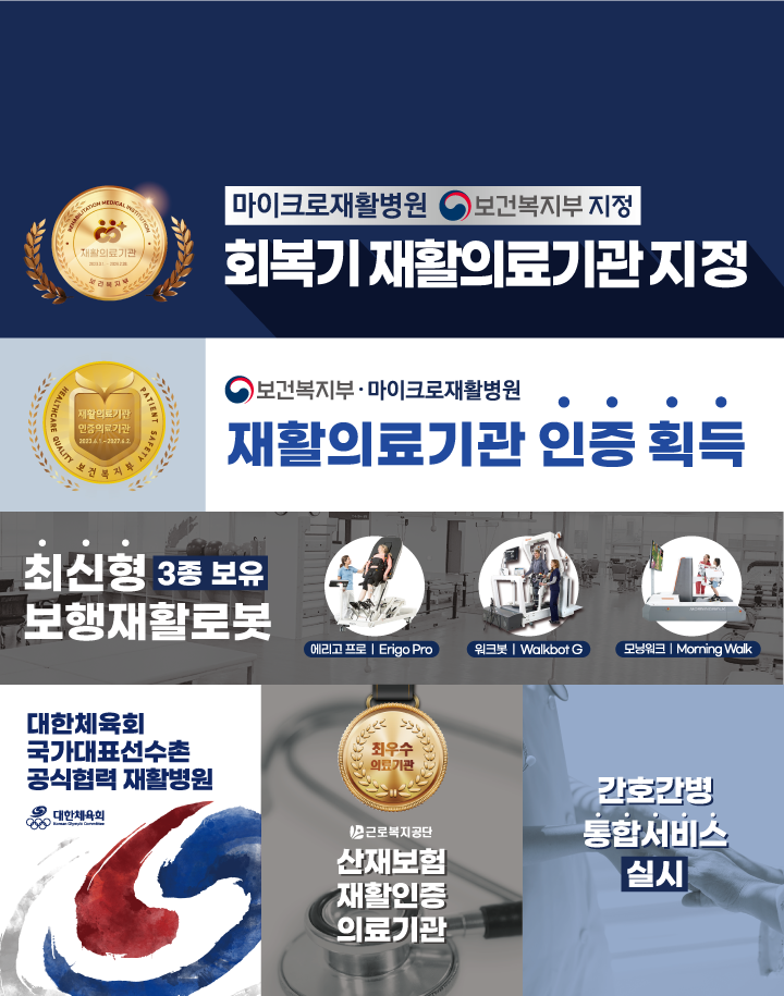 국가대표선수촌 공식 협력병원마이크로재활병원이 국가대표선수촌의 공식 협력병원이 되었습니다.